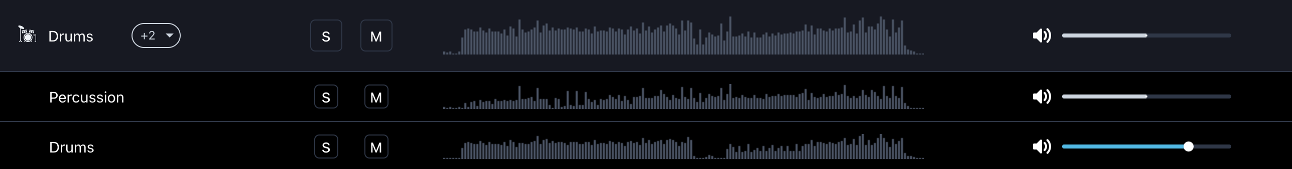 You'll notice that each individual stem is broken out into its own bar below. Use the volume slider on the right to adjust the volume of each individual stem.